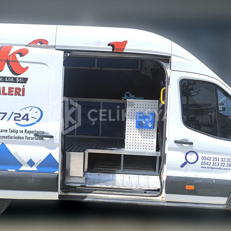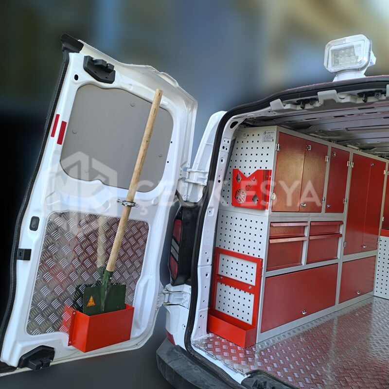 Araç İçi Dolap Sistemleri MK-425 Araç içi raf ve dolap sistemlerimiz, birçok farklı sektörde faaliyet gösteren firmaların ihtiyaçlarını göz önünde bulundurarak tasarlanıp üretilmektedir. Özellikle yerinde servis hizmeti veren firmaların bakım aracı ihtiyaçlarını karşılamaktadır. Bu tarz servis ve bakım araçlarının ihtiyaç duyduğu alet ve edevatların derli toplu muhafazası sağlanır. Ayrıca araç içinin fonksiyonel kullanımının yanında görsel olarak da zenginleştirir.