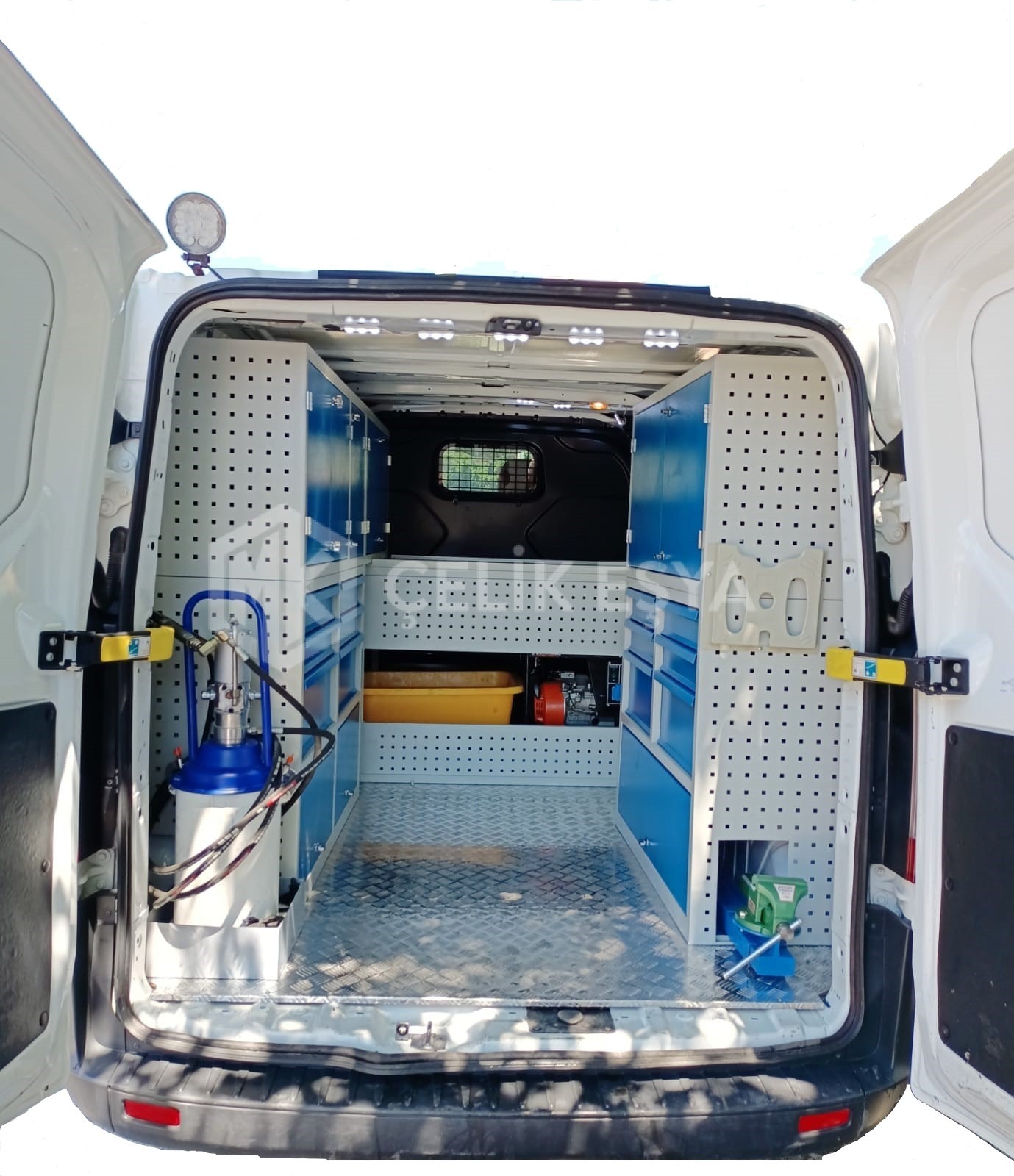Araç içi raf ve dolap sistemlerimiz, birçok farklı sektörde faaliyet gösteren firmaların ihtiyaçlarını göz önünde bulundurarak tasarlanıp üretilmektedir. Özellikle yerinde servis hizmeti veren firmaların bakım aracı ihtiyaçlarını karşılamaktadır. Bu tarz servis ve bakım araçlarının ihtiyaç duyduğu alet ve edevatların derli toplu muhafazası sağlanır. Ayrıca araç içinin fonksiyonel kullanımının yanında görsel olarak da zenginleştirir.